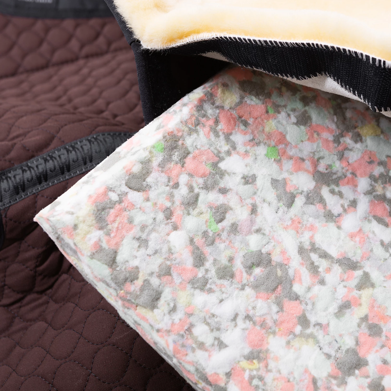 In der Form an Western Sättel mit Roundskirt angepasst. Auf der Unterseite komplett mit Lammfell bezogen. In die eingearbeiteten Einschubtaschen/Kammern, können Polster eingelegt werden. Der Widerrist ist ausgeschnitten. Ein starker Scheuerschutz aus Nylon verhindert dauerhafte Beschädigungen durch den Sattelgurt. Lieferung ohne Polster. Diese können optional bestellt werden.