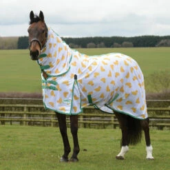 Gut passende, leichtgewichtige Sommerdecke, hergestellt aus atmungsaktivem Pritex Gewebe. Exzellente Decke für den Transport oder im Stall. Die Decke hat modische Streifen, handliche Karabinerhaken am Brustverschluss, einen Bauchgurt und Beinschnüre. Exzellente Wahl für eine Bestickung mit dem Pferde- oder Stallnamen!