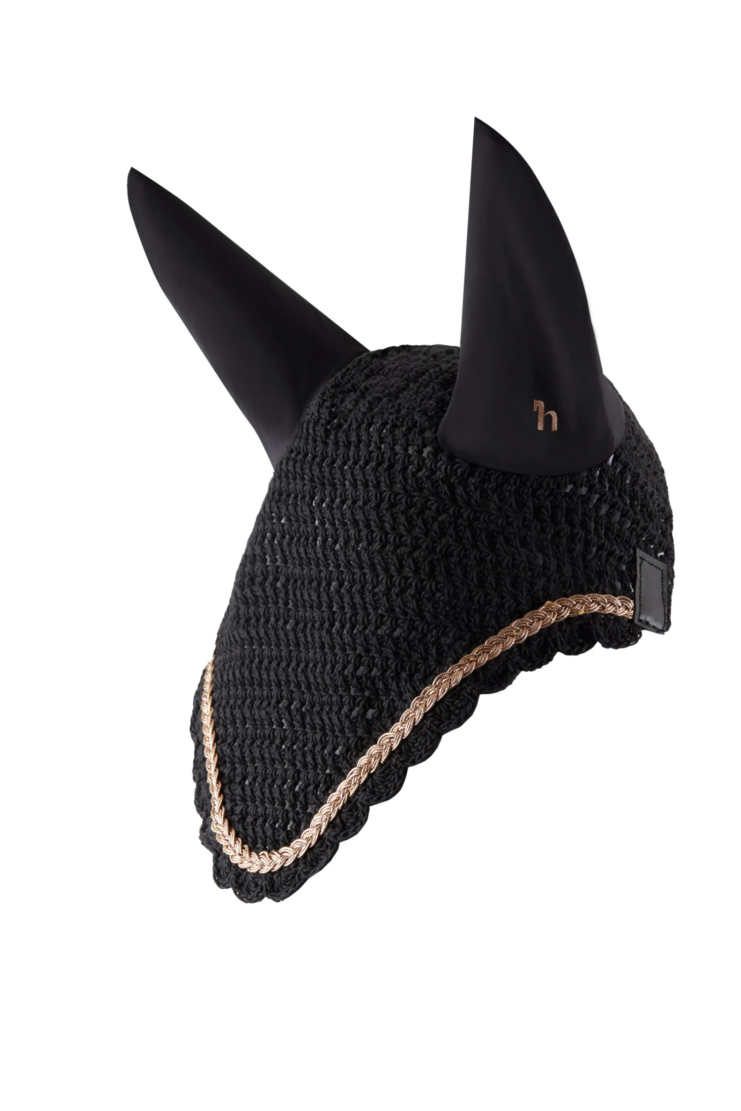 Die Horze Glarus Fliegenhaube ist aus feinem Häkelmaterial gefertigt. Elastische Ohren sorgen für Komfort und minimieren Ablenkung. Geflochtene roségoldene Paspeln verlaufen rund um die Fliegenohren und bringen ein wenig Glanz in dein Sattelzeug. Kombiniere sie mit unserer Horze Glarus Schabracke (erhältlich für Dressur und Vielseitigkeit) für einen kompletten Look!