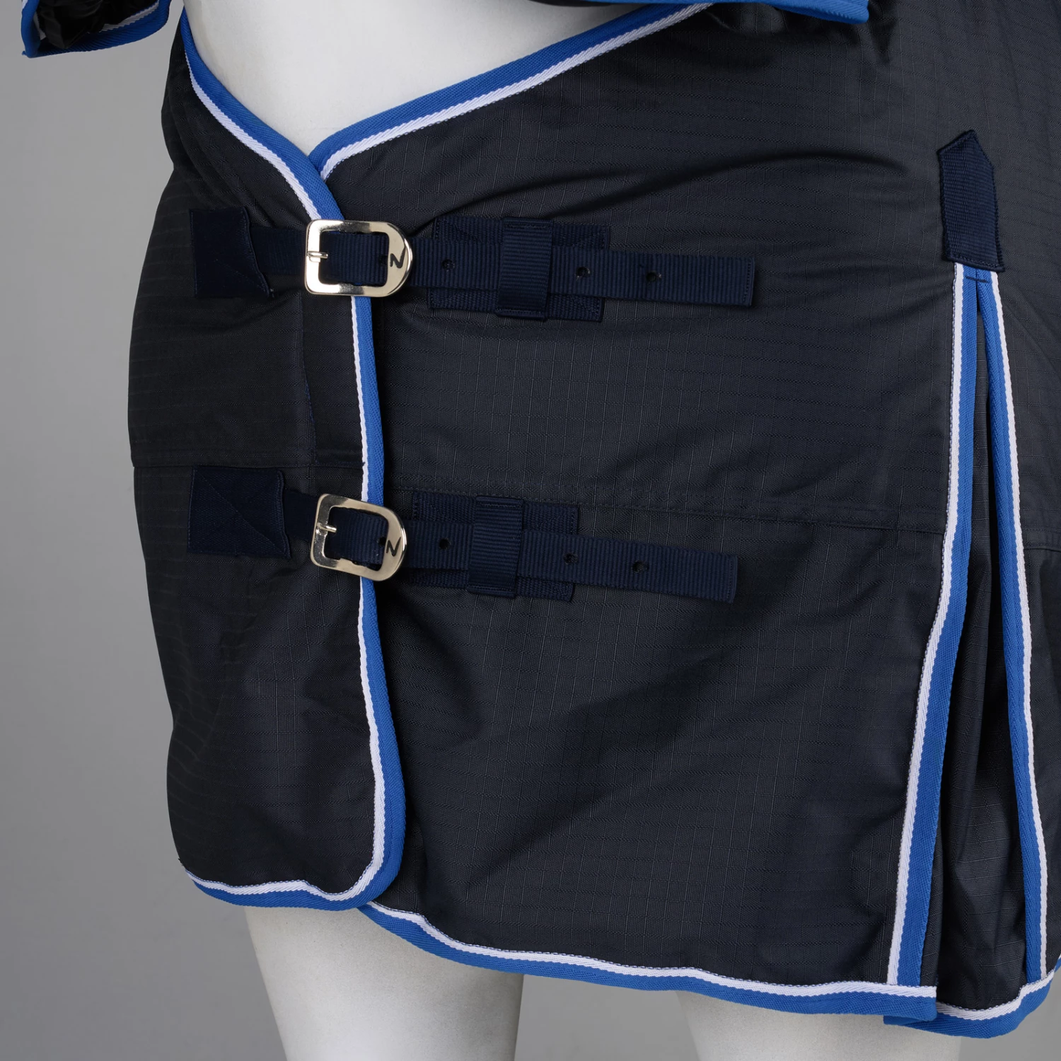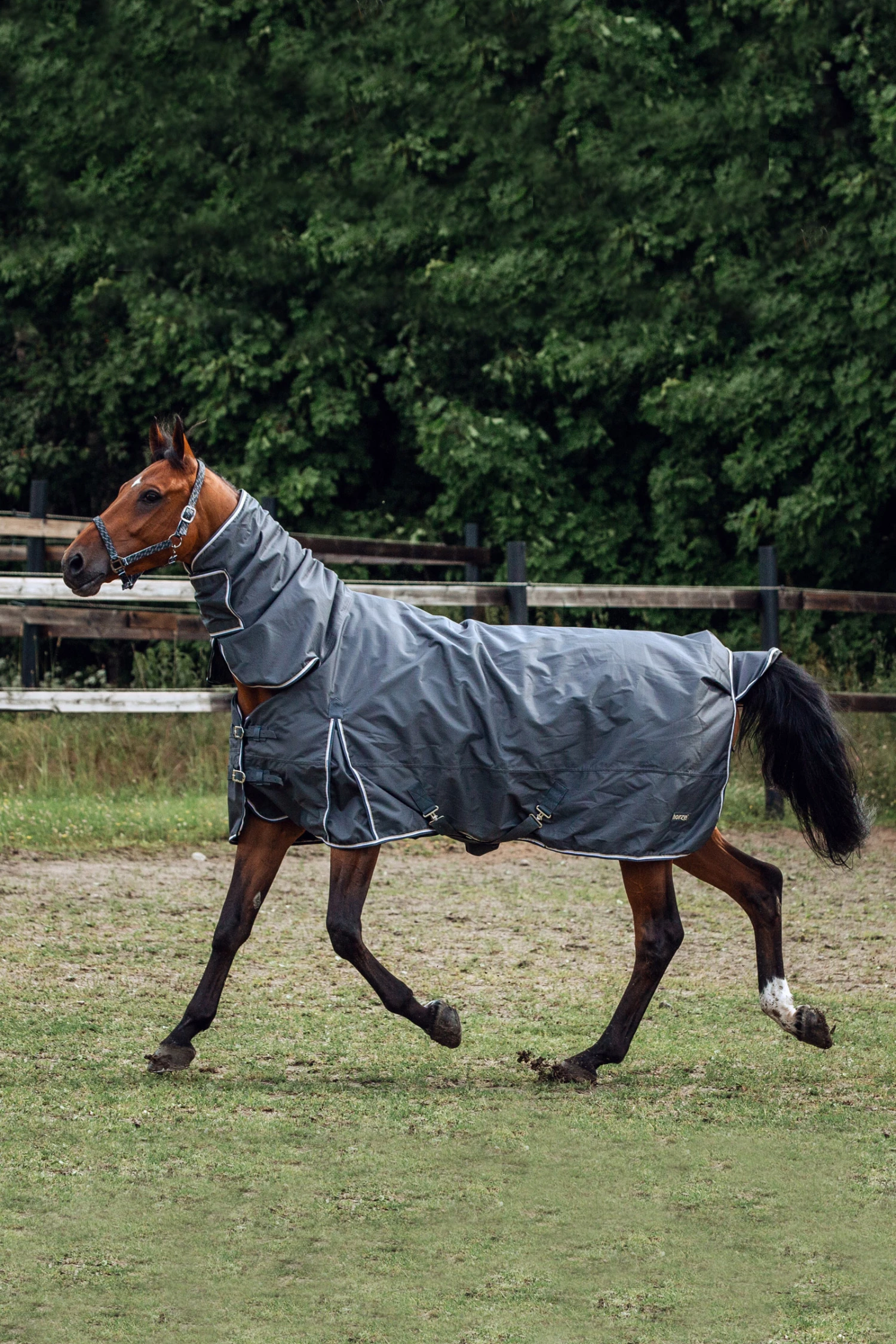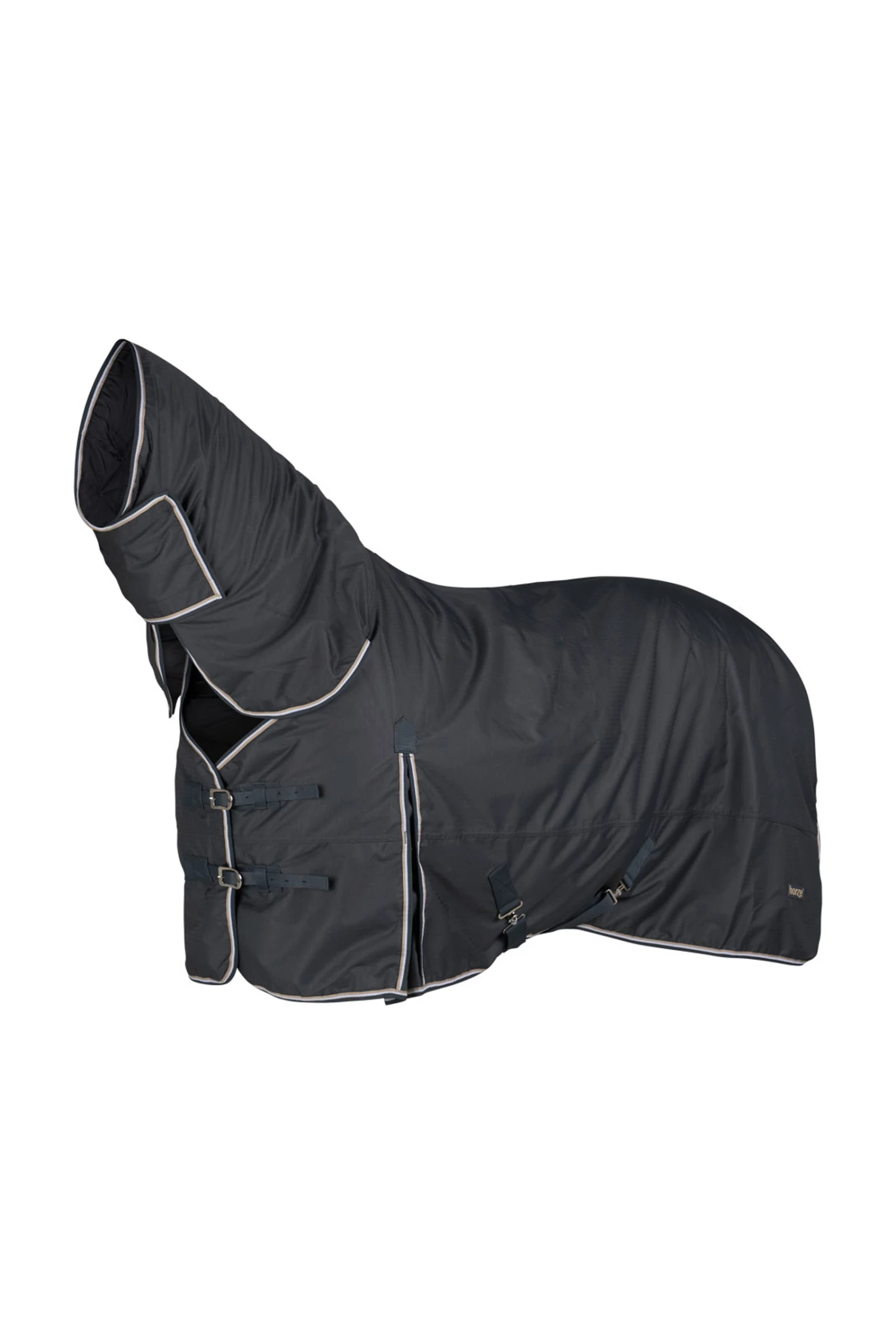 Diese Decke mit Halsteil ist aus wasserdichtem, atmungsaktivem Material gefertigt. Der gute Sitz an Hals und Schultern macht sie bequem und die hohen Gehfalten bieten Bewegungsfreiheit, damit sich dein Pferd austoben kann und nicht eingeschränkt wird. Frontverschlüsse, Kreuzgurte und Beinschnüre halten die Decke sicher an ihrem Platz und verhindern Verrutschen.