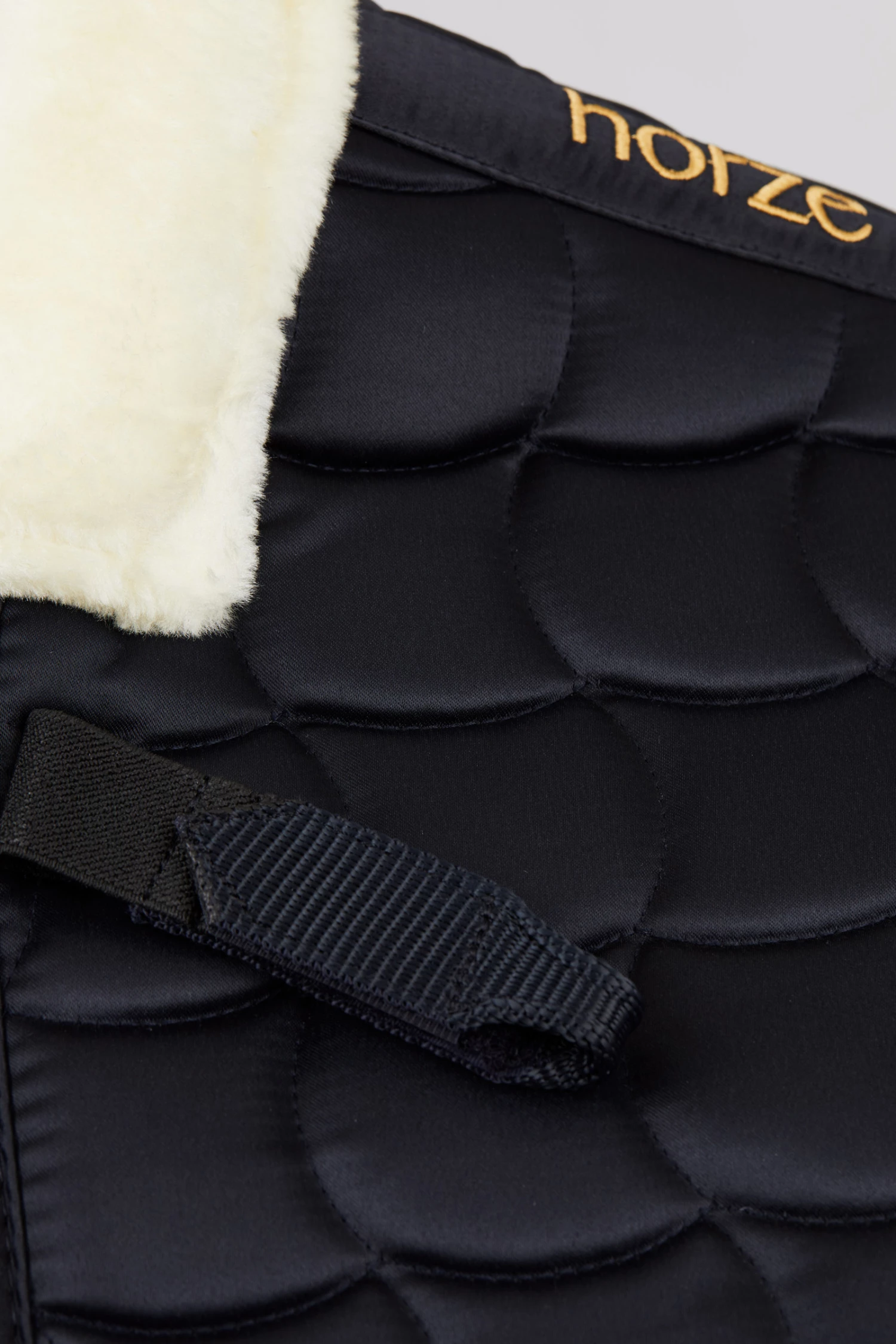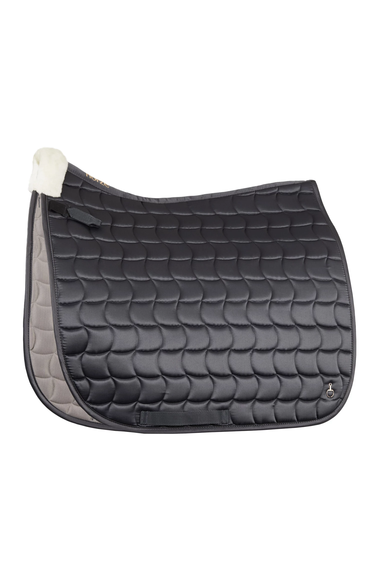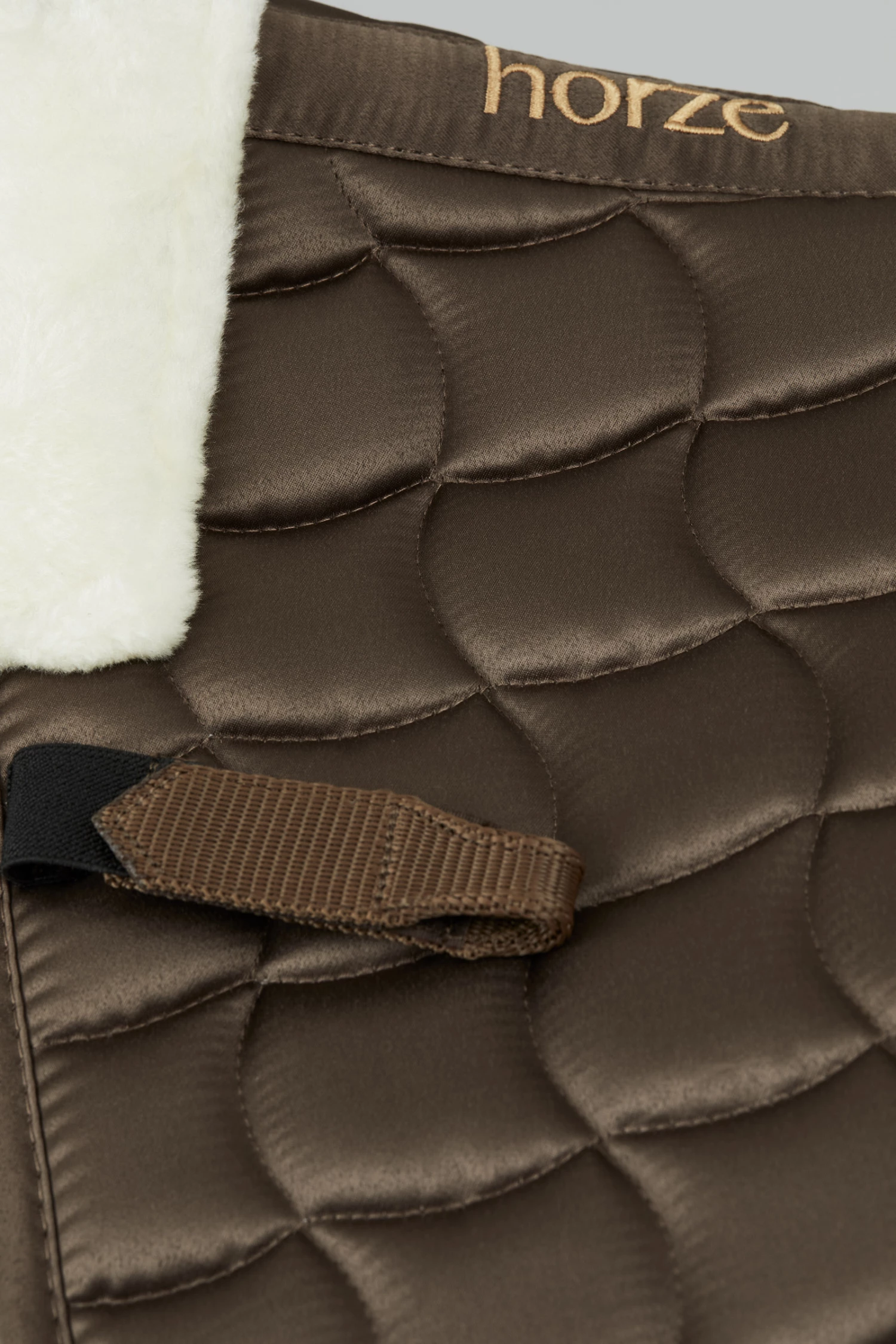 Die Horze Houston Schabracke ist mit einem atmungsaktiven Futter ausgestattet, das Feuchtigkeit ableitet. Die Wellensteppung sorgt für Komfort unter dem Sattel, und das Kunstfell am Widerrist ist besonders weich. Die gedeckten Farben sind zeitlos und passen gut zu deinem Sattelzeug. Diese Schabracke ist auch im Allzweckschnitt erhältlich. Kombiniere sie mit den Horze Houston Gamaschen für einen kompletten Look!