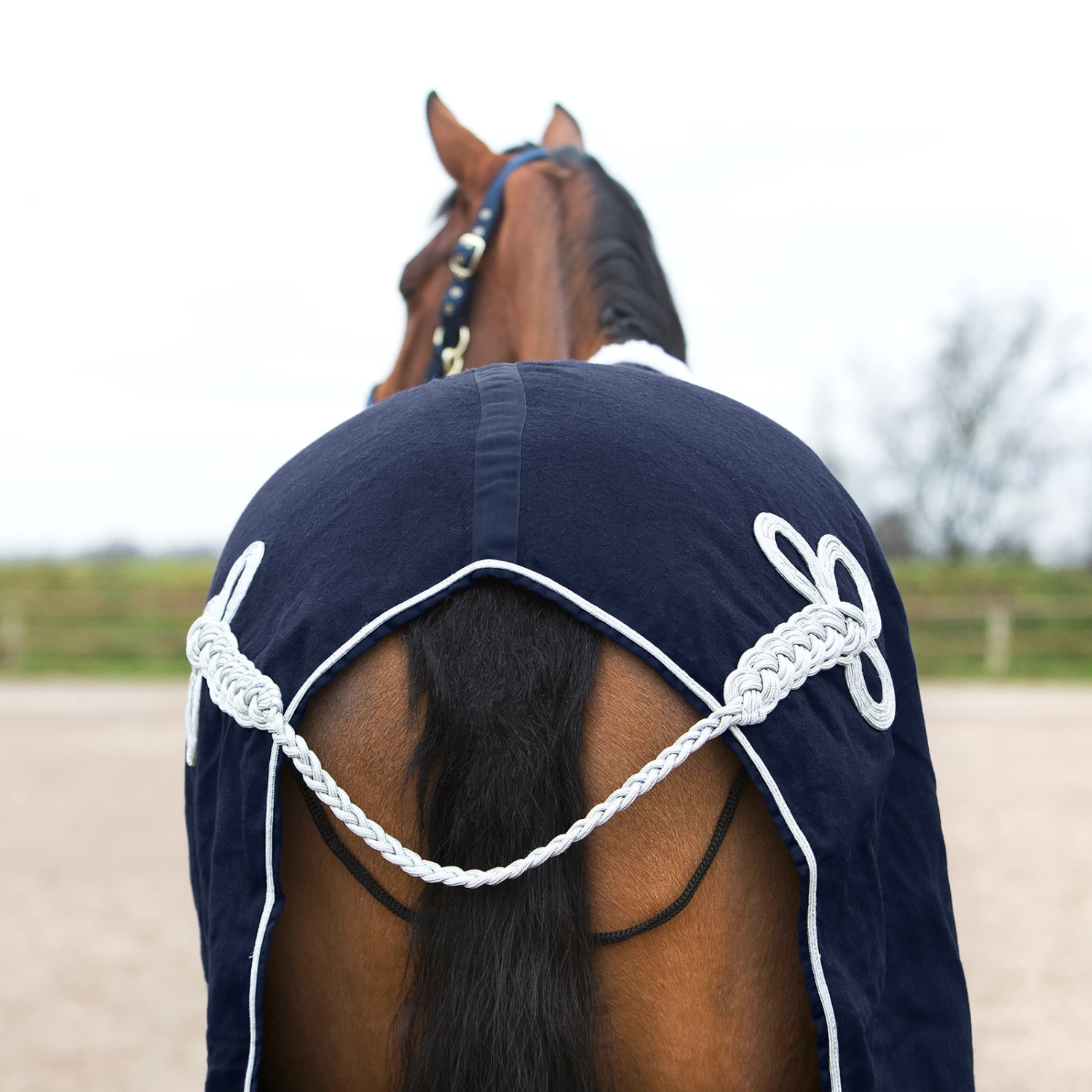 Dicke, satte Wolle mit vielen silbernen Akzenten, machen diese Decke zur perfekten Wahl in der Öffentlichkeit. Die schwere Kordel an der Hüfte ist ein klassisches Design und ergänzt die schöne Silberpaspel und das Z-Logo. Die Decke wird Ihre erste Wahl für Transporte sein, da Ihr Pferd erfrischt und gut aussehend ankommen wird, wenn es bei der nächsten Veranstaltung ausgeladen wird. Atmungsaktive Wolle bedeutet, dass es warm bleibt, aber nicht überhitzt. Die strapazierfähige Konstruktion sieht zart aus, ist aber robust und lässt sich gut waschem, um Saison für Saison zu bestehen.