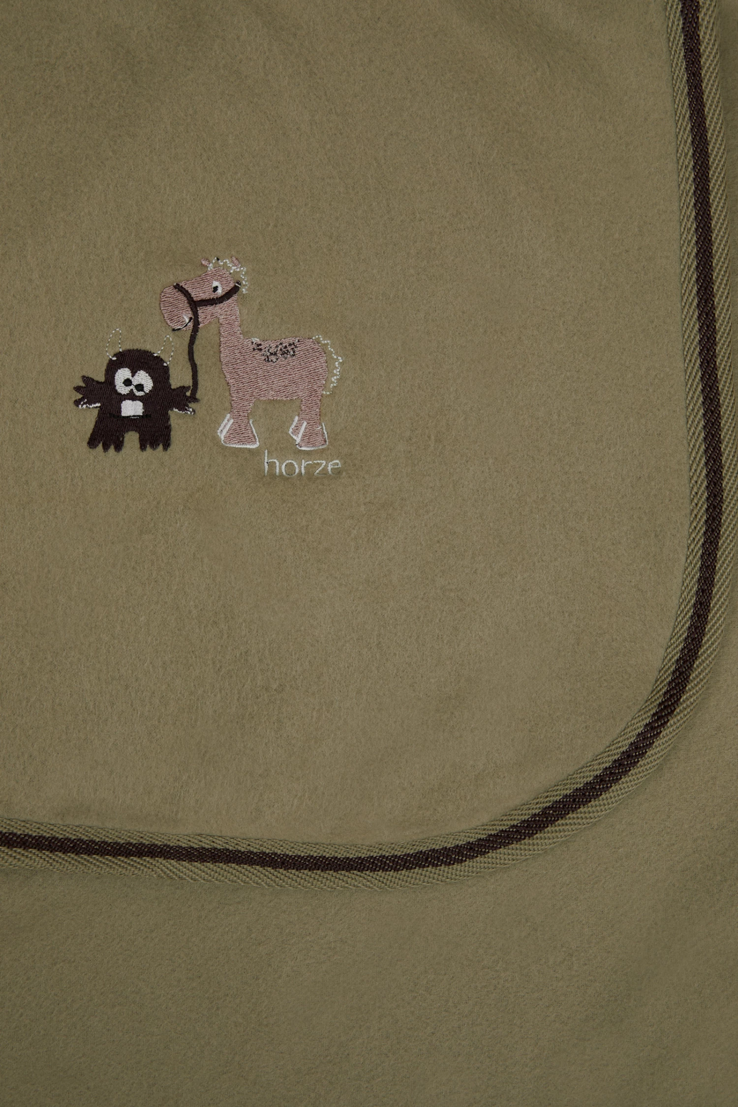 Die Horze Monster Fleecedecke ist aus warmem Material gefertigt. Das Kunstfell am Widerrist sorgt für bequemen Tragekomfort. Das Monstermotiv bringt Spaß in deine Reitausrüstung. Hohe Gehfalten sorgen für Bewegungsfreiheit. Doppelte Frontschnallen, Kreuzgurte und Schweifriemen halten die Decke an ihrem Platz. Kombiniere diese Decke mit dem Rest unseres Horze Monster-Sortiments für einen kompletten Pony-Look!
